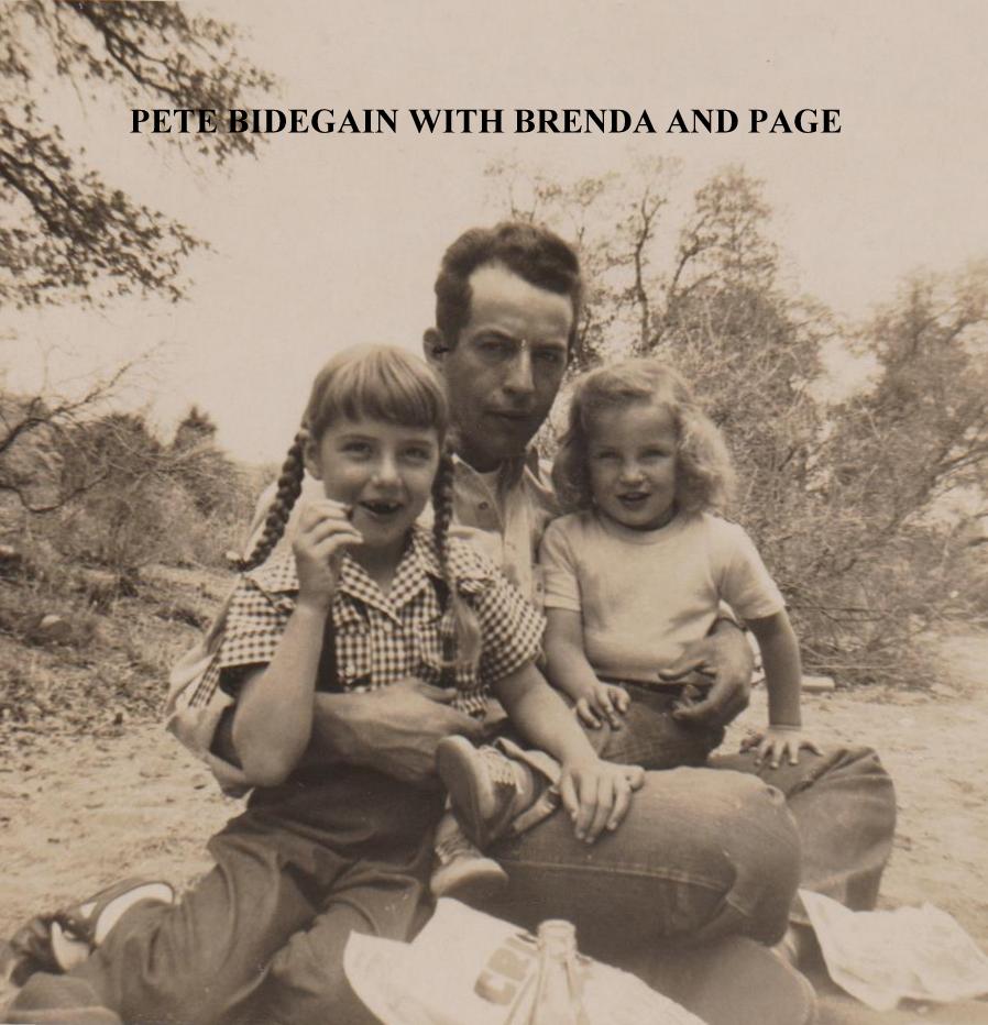 Pete's first wife, Mary, contracted polio when he was working for the U.S. Government in Mexico City. Despite immediately returning to a hospital in Tucson, Mary passed away. Pete and his daughter Page moved to Casa Grande to live with Mary's parents. About the same time Clorene, her husband, and daughter Brenda were living in occupied Japan where her husband had served on a U.S. Navy vessel. The ship caught fire at sea and he was lost. Clorene and Brenda went back to Arizona and moved in with Clorene's family in Casa Grande. Pete and Clorene met in Casa Grande and eloped when Brenda was seven and Page was five. The following year Cathy was born, followed by Peter and Todd.The Bidegains moved to the Babacomari Ranch in Elgin in 1961 when the youngest, Todd, was three. Pete managed that ranch for years. He later started a second career as a real estate agent in his 'golden' years. He loved ranching and country living.